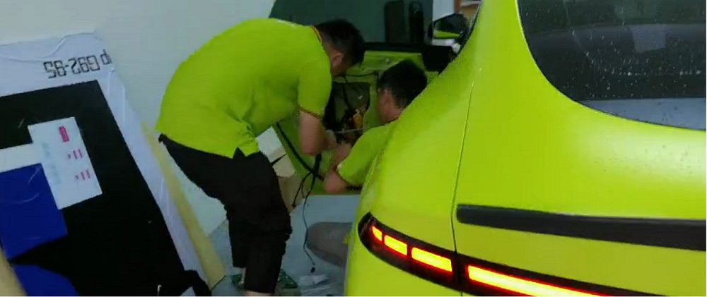 2021年5月13日,深圳市兴嘉林电子科技有限公司改装车间内一片繁忙景象。今日两名车主喜提小鹏P7鹏翼版新车,该车因为拥有炫酷的鹏翼门(俗称剪刀门),受到市场上广大新能源汽车爱好者的追捧。四名工程师一起工作,为这两台小鹏P7鹏翼版新车升级后门的电吸门。在升级完成后,小鹏P7鹏翼版新车将更炫、更酷、更加具有科技感。